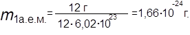 Понятия “атомная масса” и “масса атома” — похожие понятия, но не тождественные. Масса атома — это масса конкретного изотопа, а атомная масса — усредненное понятие, учитывающее, в частности, распространенность различных атомов — изотопов в природе. Так, в природе существуют два изотопа хлора: 35Cl и 37Cl. Однако атомная масса хлора не 35 и не 37, а 35,5 а.е.м., так как содержание изотопов хлора в природе: 35Cl — 75,4 % и 37Cl — 24,6 %. Средняя величина 35,5 а.е.м.(А). А = 35 · 0,754 + 37 · 0,246 = 35,49 а.е.м.