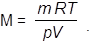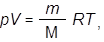 где p – давление газа; V — объем газа; n — число молей газа; T — абсолютная температура газа; m — масса газа; M — молярная масса газа; R — универсальная газовая постоянная. При применении данного уравнения важно правильно и согласованно использовать единицы измерения всех параметров и, в частности, универсальной газовой постоянной (R), которая может иметь разные численные значения в зависимости от применения разных единиц измерения. Так, в системе СИ: R = 8,31 Па · м3/(моль · К) = 8,31 Дж/(моль · К). Другие примеры значений R: R = 8,31 кПа · л/(моль · К); R = 0,082 атм·л/(моль · К); R = 62,4 мм рт.ст. · л/(моль · К). Пример Вычислить молекулярную массу газа, если известно, что 0,644 г газа занимают объем 500 мл при t = 30 ° C и давлении в 2 атм. Решение