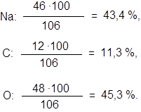 Приведем 3 варианта решений. R = 8,31 Дж/(моль·К). Тогда m = 0,644 г; T = 30 + 273 = 303 К, p = 2 · 1,013 · 105 = 2,026 · 105 Па, V = 0,5 · 10-3 м3 M = 0,644 · 8,31 · 303/(2,026 · 105 · 0,5 · 10-3) = 16,0 г/моль, R = 0,082 атм·л /(моль·К). Тогда M= 0,644 · 0,082 · 303 /(2 · 0,5) = 16,0 г/моль, R = 62,4 мм.рт.ст.·л/(моль·К), M = 0,644 · 62,4 · 303 /(2 · 760 · 0,5) = 16,0 г/моль. Расчет процентного состава и вывод химических формул веществ Рассмотрим эти расчеты на примерах. 1. Рассчитаем процентный состав химических элементов по массе в карбонате натрия Na2CO3. Молекулярная масса вещества является суммой атомных масс химических элементов. µ = 2 · 23 + 12 + 3 · 16 = 106 а. е. м. М = 106 г/моль.