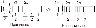 64Gd: 1 s 22 s 22 р 63 s 23 р 63 d 104 s 24 р 64 d 104 f 75 s 25 р 65 d 16 s 2 Часто распределение электронов в атоме дается по квантовым ячейкам, соответствующим электронным орбиталям, о чем говорилось выше (с. 19). При этом учитывается правило Гунда о таком распределении электронов по ячейкам с данным значением l, чтобы суммарный спин атома был бы максимален, или, что то же самое, было бы заполнено возможно большее число ячеек. Примеры 1. N: 1 s 22 s 22 р 3. Возможны такие варианты: