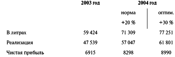 Теперь перед New Age стоит задача дальнейшего развития компании. В 2004 году акционеры компании считают возможным заработать на 20 % больше денег, чем в 2003 году (табл. П11, П12). Отличным будет признан результат +30 %, тем более что в этом случае компания переместится еще на одну позицию вверх в таблице распределения рынка.