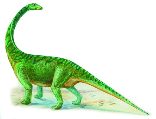 Гигантские анхизавры представляли большую группу древних животных, относящихся к отряду зауроподов, или ящероногих. Они были самыми крупными представителями животного мира, когда‑либо жившими на Земле. Эти травоядные колоссы обладали большим туловищем, маленькой головой и длинной шеей, которая и позволяла животным дотягиваться до находившихся на огромной высоте молодых листочков древних деревьев. Их передние зубы по форме напоминали гвозди. Именно с их помощью зауроподы срывали зеленые листья и молодые ветки, а пережевывали их уже коренными зубами. Несмотря на свои внушительные размеры, зауроподы относились к классу растительноядных. Они передвигались, используя все четыре лапы, и обладали своеобразным по строению скелетом. Позвоночник зауроподов по внешнему виду можно сравнить с ажурным стальным мостом: он был таким же легким, но невероятно прочным. По мнению ученых‑палеонтологов, расцвет популяции зауроподов приходился на юрский период, который характеризовался наибольшим видовым разнообразием животного мира. Именно тогда тяжеловесные ящероногие – зауроподы с трудом передвигались по поверхности Земли, изо всех сил стараясь перенести свое многотонное тело с одного места на другое. Действительно, среди них были настоящие гиганты: масса тела диплодока нередко достигала 30 т, апатозавра – 40 т, брахиозавра – около 50–70 т, а сейсмозавра – до 130 т. В Северной Америке была обнаружена лопатка ультразавра, длина которой составляла около 2,5 м, а длина бедренной кости антарктозавра, обнаруженного в Аргентине, достигала 2,4 м. Естественно, что такие колоссы медленно передвигались по суше в поисках вкусной сочной зелени. Известно, что длина тела диплодока составляла не менее 26 м, а брахиозавра – около 28 м. Для того чтобы насытиться, гигантским травоядным нужно было съесть примерно 1 т зеленой массы. Особенный интерес представляет тот факт, что среди скелетных костей некоторых зауроподов в месте расположения желудка учеными были найдены камни. Принято считать, что камни служили своеобразными жерновами и способствовали лучшему перевариванию проглоченных животными веток и листьев.