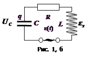 ИЗУЧЕНИЕ ЯВЛЕНИЯ РЕЗОНАНСА В КОЛЕБАТЕЛЬНОМ КОНТУРЕ Цель работы: 1. Изучение явления резонанса в колебательном контуре, снятие резонансной кривой. 2. Расчет основных параметров колебательного контура. Оборудование: Генератор Г6-15, вольтметр В3-39, магазин сопротивлений, набор катушек индуктивности, набор конденсаторов. Колебательный контур - это замкнутая электрическая цепь, состоящая из последовательно соединенных катушки индуктивности Свободными колебаниями называются колебания, которые происходят в отсутствие переменных внешних воздействий на колебательную систему (колебательный контур) и возникают вследствие какого-либо начального отклонения этой системы от состояния ее устойчивого равновесия. Так, например, колебания в контуре можно вызвать, сообщив обкладкам конденсатора некоторый начальный заряд. Свободные колебания в реальном колебательном контуре всегда затухают. Затуханием колебаний называется постепенное ослабление колебаний с течением времени, обусловленное потерей энергии колебательной системой. Затухание в колебательном контуре вызывается, главным образом, тепловыми потерями в проводниках и потерями энергии на излучение электромагнитных волн. Чтобы колебания были незатухающими, необходимо регулярно восполнять убыль энергии в колебательной системе за счет работы тех или иных внешних сил. Колебания, в процессе которых колебательная система подвергается внешнему периодическому воздействию, называются вынужденными колебаниями. Вынужденные электрические колебания можно получить, если последовательно с элементами контура включить периодическую ЭДС (рис.1, б) Второе правило Кирхгофа с учетом внешней ЭДС