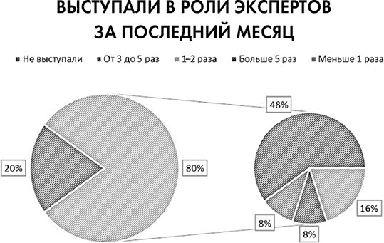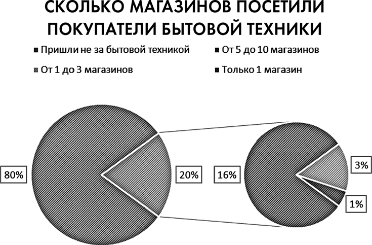 Собравшись в просторном кабинете Семена Николаевича, все ждали Ингу Валерьевну. Совещание без нее решили не начинать. Наконец‑то она пришла. Пытаясь незаметно прокрасться за стол, она случайно уронила с него папку с подшивкой журналов по менеджменту организации. Хозяин кабинета укоризненно посмотрел на нее, затем перевел взгляд на Олю и сказал: – Все в курсе, зачем мы сегодня собрались. Так что предлагаю сразу переходить к сути. Ольга, начинай. Девушка встала из‑за стола и раздала присутствующим листочки с результатами исследований, представленными в виде диаграмм. – Коллеги, я хотела бы рассказать вам о результатах исследований. Основная их часть продублирована в раздаточных материалах, которые у вас на руках. Полные версии исследований доступны на внутреннем портале компании. После того как я озвучу краткие результаты, я перейду к комментариям и выводам, – начала Ольга. – Итак, первое исследование – опрос специалистов по информационным технологиям. 80 процентов айтишников выступали экспертами для своих знакомых при покупке компьютеров и комплектующих, из них 60 процентов – от трех до пяти раз в месяц, 20 процентов – от одного до двух раз в месяц, и по десять процентов – чаще пяти раз и реже одного раза в месяц.
