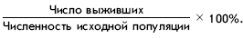 Кривая выживания представляет собой график зависимости от времени числа выживших на данный момент особей для некоторой начальной группы новорожденных. Каждому биологическому виду свойственна своя характерная кривая выживания. При построении графика по оси абсцисс откладывают относительный возраст, а по оси ординат – абсолютное число выживших особей или их процент от исходного числа по формуле: