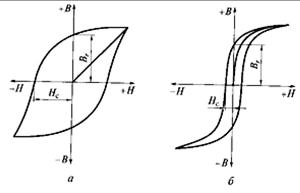 Предположим, что изначально не намагниченный образец пометили в постепенно возрастающее внешнее поле и по основной кривой намагниченности (мелкий красный пунктир) дошли до участка насыщения 1. Если теперь постепенно ослаблять напряженность Н, создаваемую внешними токами проводимости, намагниченность J и поле В в образце не будут уменьшаться по той же основной кривой, а будут меняться так, как это показано черной кривой. Когда напряженность станет Чтобы полностью убрать остаточную намагниченность, надо приложить напряженность Нс противоположного направления – так называемую «коэрцитивную силу». При дальнейшем изменении напряженности кривая В (Н) образует замкнутую «петлю гистерезиса» («гистерезис» - греч. «отставание»). Если размагничивание начать не с участка насыщения, а раньше (точка 1 а), то получится петля меньшего размера (зеленая). Чтобы полностью размагнитить образец и привести его к состоянию