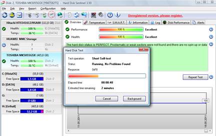 Рисунок 7 – Запуск быстрого теста жесткого диска