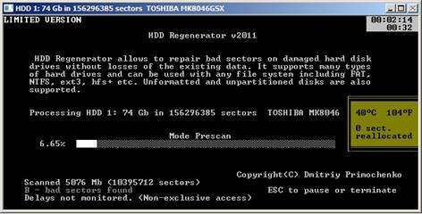 3.3 Диагностика и устранение неисправностей жесткого диска 3.3.1 HDD Regenerator Запустите установленную программу HDD Regenerator.