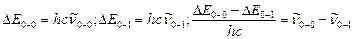 где 1) для упрощения рассмотрения пренебрегаем пока вращательной структурой и рассматриваем только колебательные переходы. Основной тон (основная полоса) соответствует переходу 1-0