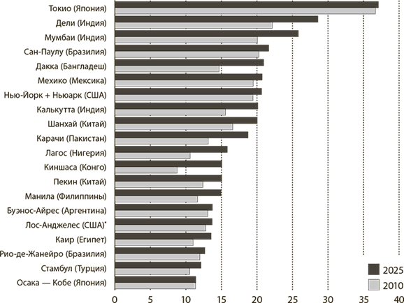 Рис. 1.4. Лига мегагородов Население, млн человек