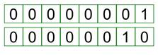Как правило, команды компьютеров работают не с отдельными битами, а с восемью битами сразу. Восемь битов составляют байт. В одном байте можно закодировать значение одного символа из 256 возможных (256 = 28).