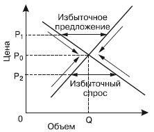 2. Уменьшение спроса на благо смещает кривую спроса влево, в результате чего снижаются равновесная цена и равновесный объем блага. 3. Увеличение предложения блага сдвигает кривую предложения вправо, в результате чего снижается равновесная цена и увеличивается равновесный объем блага. 4. Уменьшение предложения блага сдвигает кривую предложения влево, в результате чего повышается равновесная цена и сокращается равновесный объем блага. Используя указанные четыре варианта изменения спроса и предложения и сдвига их кривых, можно определить равновесную точку в случае любых колебаний спроса и предложения. Однако не всегда «срабатывают» названные выше «четыре правила» спроса и предложения, ибо часто одновременно происходит сдвиг и кривой спроса, и кривой предложения, что значительно усложняет анализ реальных экономических явлений и процессов. Научно обоснованный метод анализа спроса и предложения предполагает необходимость: а) отличать изменение спроса или предложения, которые ведут к сдвигу кривой, от изменения объема спроса или предложения, которые вызывают движение вдоль кривой; б) соблюдать все остальные условия равными, что требует знания различий между влиянием, обусловленным изменением цены блага, и влиянием, обусловленным изменением других факторов. Изложенная выше модель рынка статическая, поскольку распространяется на определенный фиксированный период (год, квартал, месяц), связи ее переменных во времени не анализируются. Включение в модель зависимости спроса, предложения и цен во времени трансформирует модель в динамическую модель. Если допустить, что под воздействием спроса реакция предложения будет более медленной, возникает иной вариант, который в экономической науке называется «паутинообразной моделью», предполагающей, что осуществление нового состояния равновесия устанавливается соотношением определенных параметров функций спроса и предложения. Выше была изложена неоклассическая концепция рыночного равновесия. Но в мировой экономической мысли имеются и другие взгляды. Например, институционалисты сомневаются в том, что для рынка характерно состояние равновесия. По их мнению, рынок не является нейтральным механизмом распределения ресурсов, цены не определяются свободной конкуренцией, которой нет, а устанавливаются теми, кто обладает экономической властью, т. е. государством и олигополиями. Согласно постулатам институционализма, движение спроса и предложения, а также рыночное равновесие зависят от действующих в стране институтов, которые развиваются и усложняются вместе с эволюцией социально‑экономической жизни. Институционалисты исходят из повышения роли государства при реализации определяющих целей общества. Вместе с тем они не противопоставляют государственное регулирование рынку, на передний план они выдвигают социальные интересы, выступают против анализа экономических отношений с позиций «экономического человека». Институционалисты считают, что неоклассики упрощают действующую экономическую теорию и практику, не придают значения социальным, правовым, политическим, психологическим факторам, воздействующим на экономику. Таким образом, институционалисты отрицают теорию рыночного равновесия.