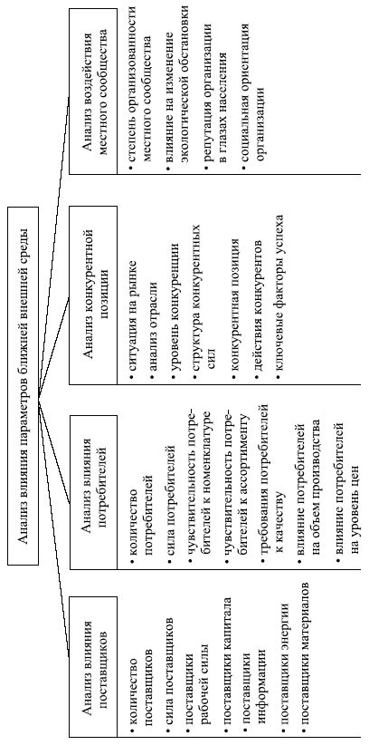 Структурная схема анализа внешней среды организации приведена на рис. 5.4 и 5.5, а ниже – пример перечней возможностей и угроз.