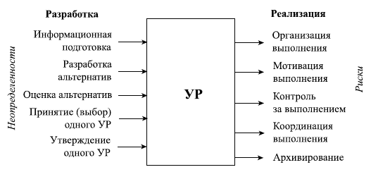 Нередко руководителям разного уровня приходится готовить УР в условиях неполной или неточной информации, большой текучести кадров, недобросовестности поставщиков, потребителей, частых изменений законодательства, неожиданных действий конкурентов и др. В результате возможны непреднамеренные ошибки в управленческих решениях. Фактические результаты решений не всегда совпадают с запланированными. Для УР характерны и неопределенность, и риск. Неопределенность определяется как не вполне отчетливая, неточная, неясная или уклончивая информация о каком‑либо объекте или процессе. Неопределенность связана с подготовкой УР, а риск – с его реализацией (рис. 5.8).