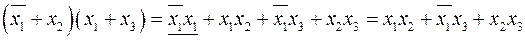 Из особенностей логических переменных и аксиом вытекают некоторые закономерности, которые представляются как законы алгебры. Для булевой алгебры выявлены следующие соотношения, которые рассматриваются как законы. 1. Переместительный закон. 1.1. 1.2. 2. Сочетательный закон. 2.1. 2.2. 3. Распределительный закон. 3.1. 3.2. Обе формы первого и второго закона и первая форма третьего закона (2.1, 2.2, 2.3, 2.4, 2.5) очевидны и особого доказательства не требуют. Остановимся лишь на (2.6).