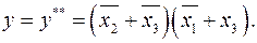 При решении задач минимизации исходную функцию обычно задают в СДНФ или в ДНФ. Решение задачи минимизации непосредственно в СКНФ и КНФ обычно сопровождается более громоздкими записями. Но, если всё же требуется минимизировать функцию, заданную в СКНФ или в КНФ, рекомендуется преобразовать её в СДНФ (ДНФ), используя свойство двойственности (п. 2.2). Порядок выполнения такой минимизации следующий. 1. Функция, предназначенная для минимизации, преобразуется в двойственную ей функцию. Правило преобразования приведено в п.2.2. 2. Производится процедура минимизации функций. 3. Делается обратное преобразование двойственной формы результата, чтобы получить его искомый минимизированный оригинал.