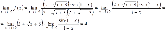 Такой разрыв называют устранимым разрывом, так как доопределив функцию f(x) надлежащим образом (положив при x=1 f(x) =4) получим непрерывную функцию: