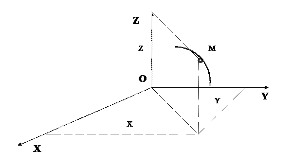 Координатный способ задания движения Положение точки по отношению к данной системе отсчета При движении все эти три координаты будут с течением времени изменяться. Чтобы знать закон движения точки, необходимо знать значения координаты точки для каждого момента времени, т.е. знать зависимости:
