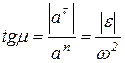или Угол между ускорением точки М и радиусом, проведенным в эту точку, составляет μ, который можно найти по формуле: