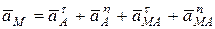 Так как точка М вращается вокруг полюса А по окружности, то разложим на составляющие – нормальную