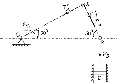 Пример 1 (18.11). Для механизма, представленного на рис. 5.2 угловое ускорение кривошипа ОА Решение