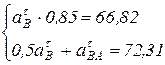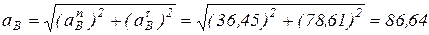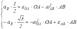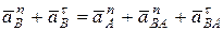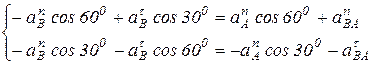 Определим ускорение точки В, выбрав точку А за полюс. Тогда