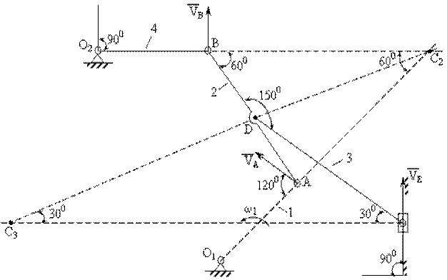 Пример 2. На рис. 11.4. представлен механизм в данном положении: