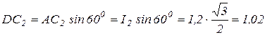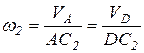 Так как угол С2ВА = 600, угол ВАС2 = 180-120 = 600, то угол ВС2А = 600. Это означает, что треугольник ВС2А является равносторонним поэтому ВС2 =АС2, тогда VB = VA = 5,4 м/с., т.е. VB = 5,4 м/с. Для определения скорости точки D соединим точку С2 с точкой D и проведем линию, перпендикулярную DC2. Так как в равнобедренном треугольнике медиана является высотой и биссектрисой, то направление вектора скорости точки D совпадет с направлением звена I2. Модуль скорости точки D определим из соотношения: