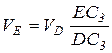 Направление скорости точки Е совпадает с направляющей ползуна, т.е. имеет вертикальное направление. Зная направления векторов скоростей точек D и Е, принадлежащих звену I3, определим мгновенный центр скоростей звена I3. Это будет точка С3, тогда составим соотношение: