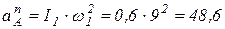 Точка А совершает вращательное движение по окружности вокруг неподвижного центра О1. Поэтому ускорение точки А разложим на нормальную и касательную составляющие: