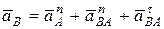 Если полюс А движется не прямолинейно, то его ускорение будет слагаться из касательного и нормального и тогда