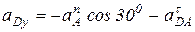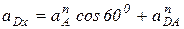 Определим ускорение точки D, выбрав за полюс точку А. Тогда