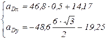 Тогда Полученная система двух уравнений имеет две неизвестные: Так как точки D и В принадлежат одному звену DB, которое совершает возвратно-поступательное движение, поэтому все точки этого звена имеют одинаковые скорости и ускорения по величине и направлению. Вследствие этого ускорение точки D будет: