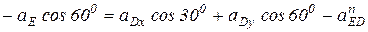 Рис. 11.7 Ускорение точки Е будем определять, выбрав за полюс точку D, тогда: