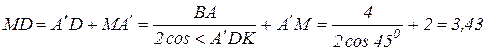 При t = 1c Вращательное движение точки М вокруг оси ОО1 является переносным движением. Траектория переносного движения является окружность с радиусом r. Определим положение точки М на прямой АВ при t = 1c.