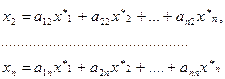 Эта система означает, что переход от старого базиса к новому задается матрицей перехода Найдем зависимость между координатами вектора в разных базисах. Пусть х имеет координаты: