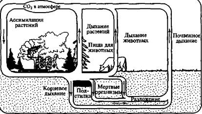 Биосферный и биологический круговороты. Все вещества на нашей планете находятся в состоянии постоянного круговорота. Солнечная энергия вызывает на Земле два круговорота веществ: один, большой, охватывающий всю биосферу, называется биосферным, а другой — малый — протекает внутри экосистемы и называется биологическим. Биосферному круговороту предшествует геологический, который обусловливает разрушение, миграцию и аккумуляцию химических соединений и веществ. В такой миграции ведущая роль принадлежит солнечной энергии, от которой зависят скорость и масштабность развития экзогенных процессов. В них главенствующая роль принадлежит гравитационным и особенно термическим свойствам поверхности суши и водной оболочки, которые поглощают и отражают солнечные лучи, обладают теплопроводностью и теплоемкостью. Неустойчивый гидротермический режим Земли вместе с планетарной системой циркуляции атмосферы обусловил геологический круговорот веществ, который вместе с эндогенными процессами — спредингом, субдукцией, вулканизмом, тектоническими движениями — вызывает формирование и развитие океанов и континентов. Продукты выветривания транспортируются воздушными массами и водными потоками. С появлением биосферы в большой круговорот веществ включились продукты жизнедеятельности организмов, и, таким образом, геологический круговорот приобрел совершенно новые черты. Он становится поставщиком живым организмам питательных веществ, во многом определяет условия их существования и при этом наряду с механической и химической дифференциацией и аккумуляцией вещества стала осуществляться биологическая дезинтеграция и биологическая аккумуляция вещества. Большой круговорот веществ в биосфере характеризуется двумя важными особенностями. Во-первых, он осуществляется на протяжении всей истории существования биосферы, т.е. начиная по крайней мере с 3,8—4,0 млрд лет назад. Во-вторых, он представляет собой современный планетарный процесс, играющий важную роль в дальнейшем существовании и развитии биосферы. Перемещающееся в геологическом круговороте неорганическое вещество является своеобразным резервным фондом для биологической ветви биосферного круговорота. Этот резервный фонд сосредоточен в атмосфере в виде газов и термодинамически активных веществ, в воде — в виде растворенных химических элементов их соединений, в литосфере — в виде минеральных и органоминеральных веществ, часть из которых находится в верхних горизонтах и почвах. С атмосферой и гидросферой связан в основном транзитный цикл круговорота, а с литосферой и частично с гидросферой — аккумулятивный, или осадочный. Малый, или биологический, круговорот веществ развивается фоне геологического, охватывающего всю биосферу. Хотя он происходит внутри отдельных экосистем, он не замкнут, а это обусловлено тем, что в экосистему вещество и энергия поступают извне. Растения, животные и почвенный покров на суше образуют сложную глобальную систему, которая формирует биомассу, связывает и перераспределяет солнечную энергию, углерод атмосферы, влагу, кислород, водород, азот, фосфор, серу, кальций и другие элементы, участвующие в жизнедеятельности организмов, которые называются биогенными элементами. Растения, животные и микроорганизмы водной среды, которые выполняют т