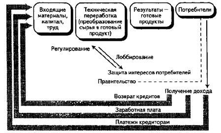 Система есть набор взаимосвязанных и взаимозависимых частей, составленных в таком порядке, который позволяет воспроизвести целое для целенаправленной деятельности. Уникальной характеристикой при рассмотрении систем являются внутренние отношения между частями – наличие связей. Каждая система характеризуется как дифференциацией, так и интеграцией. В системе используются разнообразные специализированные функции. Каждая часть организации выполняет свои определенные функции. В то же время для поддерживания отдельных частей в одном организме и формирования завершенного целого в каждой системе осуществляется процесс интеграции. В организациях эта интеграция обычно достигается координацией уровней иерархии, прямым наблюдением, правилами, процедурами, курсом действий. Система как целое не является простой суммой частей, поскольку систему следует рассматривать как единство. Хотя организации созданы из частей или составных элементов, они сами являются подсистемами в рамках более крупной системы (отрасли). Подсистема – набор элементов, представляющих собой автономную область внутри системы. Классификацию систем можно представить по самым различным признакам, например, нематериальные и материальные, естественные и искусственные, детерминированные и стохастические, мягкие и жесткие, простые и сложные, активные и пассивные. Также можно выделить системы технические, биологические и социальные. Различаются системы открытые и закрытые. Понятие закрытой системы порождено физическими науками. Здесь понимается, что система является самосдерживаемой. Ее главная характеристика в том, что она существенно игнорирует эффект внешнего воздействия. Открытая система признает динамическое взаимодействие с окружающим миром. Организации получают свое сырье и человеческие ресурсы из окружающего мира. Они зависят от клиентов и заказчиков из внешнего мира, потребляющих их продукцию. На схеме, представляющей промышленную организацию как открытую систему (рисунок 1,5), можно видеть поступление материалов, рабочей силы, капитала.