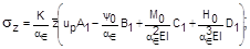 14. Бiр сатылы есептеу кезiнде z тереңдiгiне пайда болатын, қаданың бүйiр бетiмен жанасуы бойынша топыраққа түсiрiлген есептiк қысымды , кПа (тс/м2), сонымен қатар z тереңдiгiнде қада қимасына әсер ететiн есептiк июшi моменттi, Мz, кН×м (тc×м), көлденең күштi, Hz кН (тс), және бойлық күштi N, кН (тс), төмендегi формулалар бойынша анықтау керек: