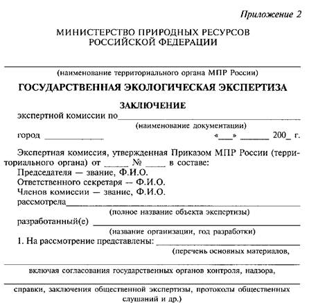Постановление Правительства РФ «Об утверждении Положения о по- рядке проведения государственной экологической экспертизы» от 11 06 96 № 698.