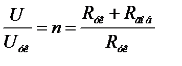 Известно, что падения напряжения на отдельных участках при последовательном соединении элементов прямо пропорциональны сопротивлениям этих участков, а между измеряемым напряжением U и падениями напряжения на участках справедлива зависимость Очевидно, чем больше будет величина добавочного сопротивления, тем при большем значении измеряемого напряжения ток в механизме достигает предельного значения. Для расчета добавочного сопротивления необходимо знать: сопротивление указателя Rук; напряжение полного отклонения указателя Uук; предел измерения напряжения U, на которое рассчитывается добавочное сопротивление. При расчете добавочного сопротивления определяют коэффициент - число, показывающее, во сколько раз расширяется предел измерения указателя: Ток, протекающий по вольтметру: