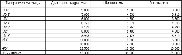 1 - линзы объектива 6 - кнопка спуска затвора, совмещенная с рычажком регулировки зума Все цифровые фотокамеры устроены очень похоже. Есть светозащищённый корпус, в котором расположена светочувствительная матрица. Её физический размер и разрешение могут варьироваться от модели к модели и это оказывает большое влияние на результат съемки, кроме того увеличение физических размеров матрицы влечёт пропорциональное увеличение размеров линз (при прочих равных условиях). Объектив, проецирующий сюжет на поверхность матрицы, тоже имеет ряд характеристик ничем не отличающихся от характеристик фотоаппаратов с любыми другими носителями изображения, такие как количество линз, материал из которого они сделаны, светосила, диапазон зуммирования (трансфокация). Третий компонент - электронная начинка, к которой помимо собственно электроники и сменных носителей памяти можно причислить все органы управления вместе с ЖК-дисплеем. Наконец, любая цифровая камера не может обойтись без электропитания, то есть батареек или аккумуляторов. Типоразмер матрицы и кроп-фактор Светочувствительные матрицы ЦФК могут быть разных типоразмеров. Что же это за размеры?