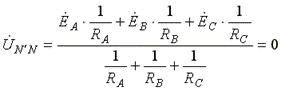 В схеме появляется напряжение смещения нейтрали, вычисляемое по формуле: