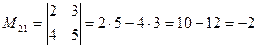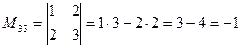 2) правило приписывания строк: 3) правило приписывания столбцов. Определение: Под минором элемента определителя III-го порядка понимается определитель младшего (II-го) порядка, получающийся из данного определителя, в результате вычеркивания строки и столбца, содержащих данный элемент. Минор обозначают Пример: Для предыдущего определителя найдем миноры