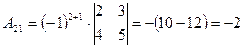 Определение: Алгебраическим дополнением (минором со знаком) элемента определителя III-го порядка называется минор этого элемента, взятый со знаком «+», если элемент занимает четное место и со знаком «–» – если его место нечетное. Алгебраические дополнения вычисляются по формуле: