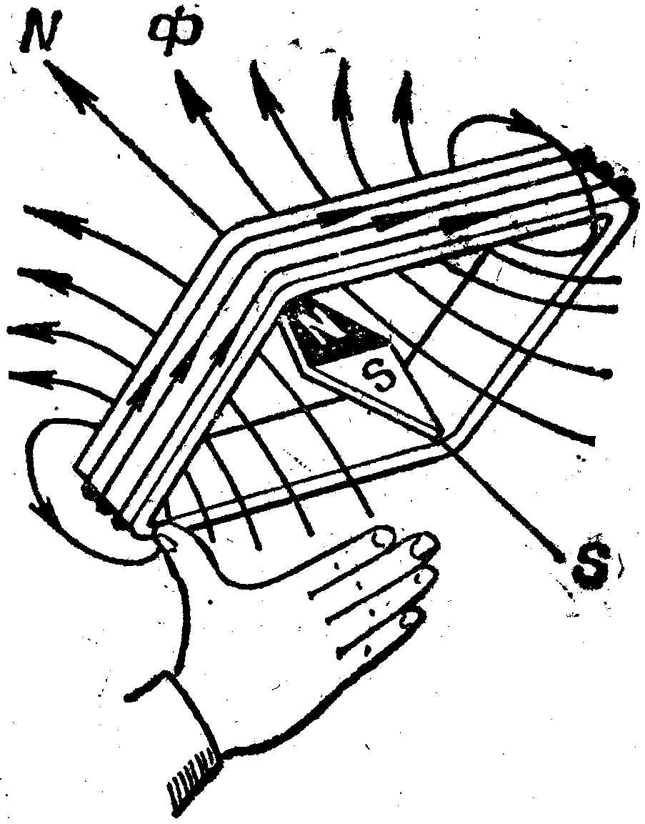 Рисунок 1.20 – Определение направления магнитного потока в рамке с током по правилу правой руки