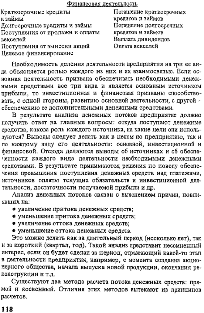 При прямом методе расчет потока осуществляется на основе счетов бухгалтерского учета предприятия; при косвенном — на основе показателей баланса предприятия и отчета о финансовых результатах. В результате при прямом методе предприятие получает ответы на вопросы относительно притоков и оттоков денежных средств и их достаточности для обеспечения всех платежей. Косвенный метод показывает взаимосвязь различных видов деятельности предприятия, а также влияние на прибыль изменений в активах и пассивах предприятия. Кроме того, основой расчета при прямом методе является выручка от реализации продукции, при косвенном - прибыль. При прямом методе поток денежных средств определяется как разница между всеми притоками средств на предприятии по трем видам деятельности и их оттоками. Остаток денежных средств на конец периода определяется как их остаток на начало с учетом их потока за данный период. При косвенном методе основа для расчета - нераспределенная прибыль, амортизация, а также изменения активов и пассивов предприятия. Здесь увеличение активов уменьшает денежные средства предприятия, а увеличение пассивов - увеличивает и наоборот. Целям более полного представления о денежных потоках служат матричные балансы за определенный период времени (квартал, год и т.д.). Назначение таких балансов прежде всего состоит в том, чтобы с одной стороны показать источник каждого вида имущества предприятия, а с другой - конкретные направления использования источников денежных средств предприятия. В матричном балансе каждый показатель записывается в трех видах: на начало и на конец периода, а также изменения за период (+, -). В результате можно получить ответы на ряд вопросов: какова взаимосвязь между активами и пассивами предприятия, какие конкретные изменения произошли в источниках финансирования активов и в направлениях использования пассивов, какие решения следует принять в целях оптимизации активов и пассивов? В настоящее время финансы предприятий находятся в кризисном состоянии, которое проявляется: · в значительном недостатке средств как для осуществления производственной деятельности, так и для инвестиций; это выражается в невысоком уровне заработной платы, задержке ее выплаты, а также в практическом прекращении финансирования социальной сферы со стороны предприятий; · в дороговизне кредита и невозможности в достаточной мере его использования для нужд предприятия; · в значительных неплатежах предприятий друг другу, нарастающих довольно высокими темпами, что усугубляет дефицит денежных средств у предприятий и осложняет их проблемы. Поэтому в данный момент первоочередной задачей для государства и предприятий является укрепление финансов предприятий и на этой основе - стабилизация финансов государства. Без ее претворения в жизнь другие задачи, в том числе и проблемы инфляции, решить невозможно. Основные пути укрепления финансов предприятий связаны с оптимизацией используемых ими денежных средств и ликвидацией их дефицита. Важнейшие направления совершенствования финансовой работы на предприятиях следующие: · системный и постоянный финансовый анализ их деятельности; · организация оборотных средств в соответствии с существующими требованиями с целью оптимизации финансового состояния; · оптимизация затрат предприя