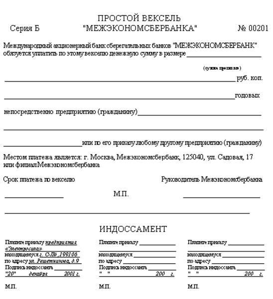 1. Какой вариант выберет индоссант. 2. Заполнить форму векселя индоссамента