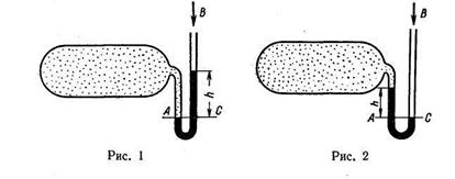 Если давление в сосуде больше атмосферного (барометрического), то жидкость в правом колене трубки поднимается; если же оно ниже, то жидкость поднимается в левом колене (рис. 2). B табл. 2.1 приводятся соотношения мeжду единицами измерения давлeния технической системы и единицами системы СИ.