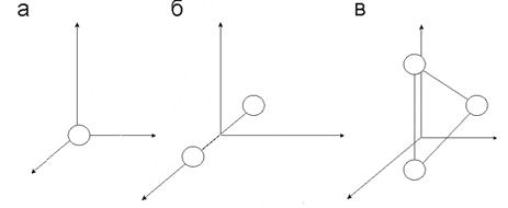 2.1. Число степеней свободы молекулы. Важной характеристикой термодинамической системы является ее внутренняя энергия U - энергия хаотического (теплового) движения микрочастиц системы (молекул, атомов, электронов, ядер и т.д.) и энергия взаимодействия этих частиц. Из этого определения следует, что к внутренней энергии не относятся кинетическая энергия движения системы как целого и потенциальная энергия системы во внешних полях. Внутренняя энергия - однозначная функция термодинамического состояния системы, т.е. в каждом состоянии система обладает вполне определенной внутренней энергией. Это означает, что при переходе системы из одного состояния в другое изменение внутренней энергии определяется только разностью значений внутренней энергии этих состояний и не зависит от пути перехода. Ранее было введено понятие степеней свободы - числа независимых переменных (координат), полностью определяющих положение системы в пространстве. В ряде задач молекулу одноатомного газа (рис. 55 а) рассматривают как материальную точку, которой приписывают три степени свободы поступательного движения. При этом энергию вращательного движения можно не учитывать (r®0, J=mr2 ®0,